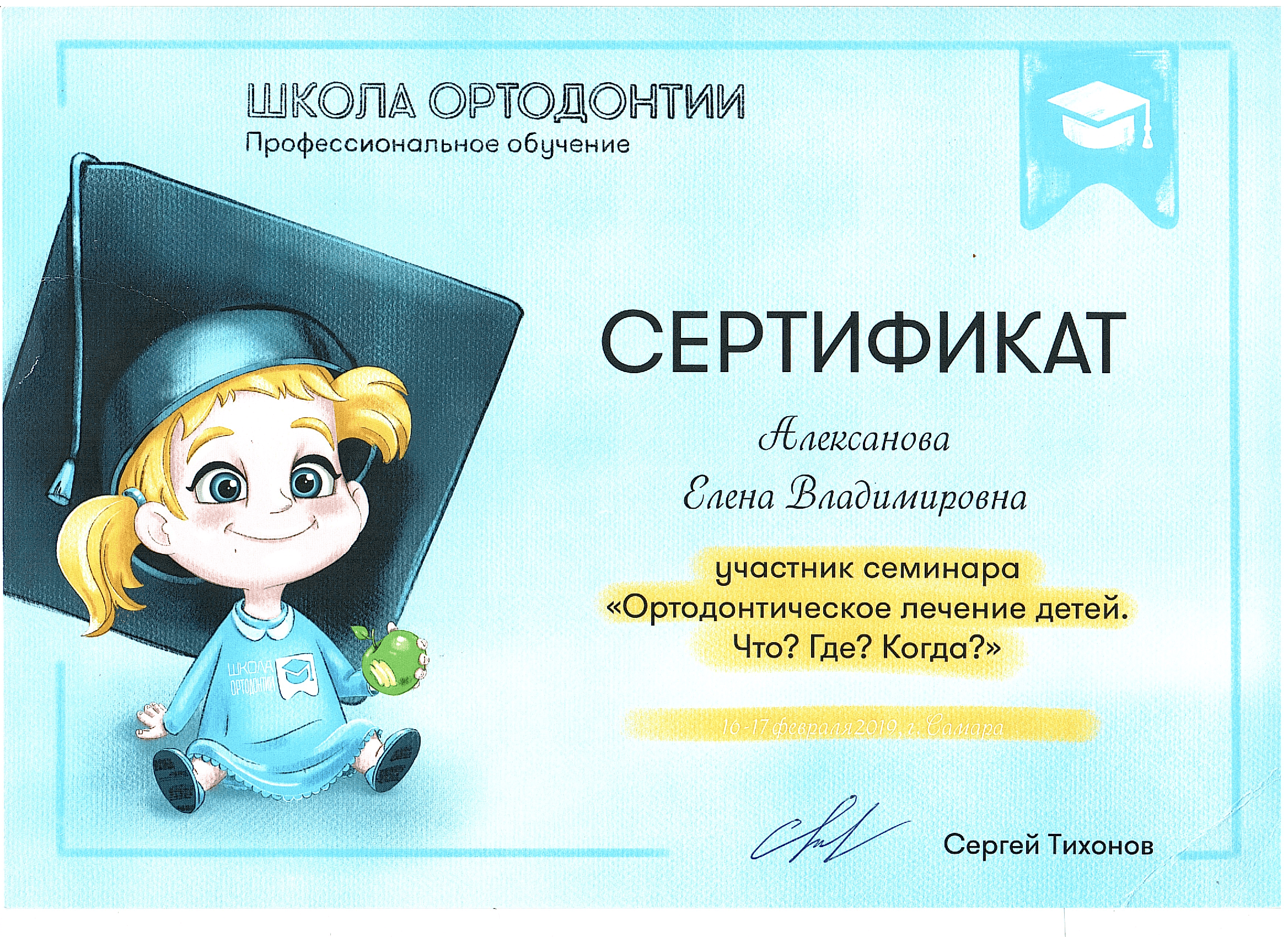 Февраль 2019 - Сертификат «Ортодонтическое лечение детей. Что. Где. Когда».