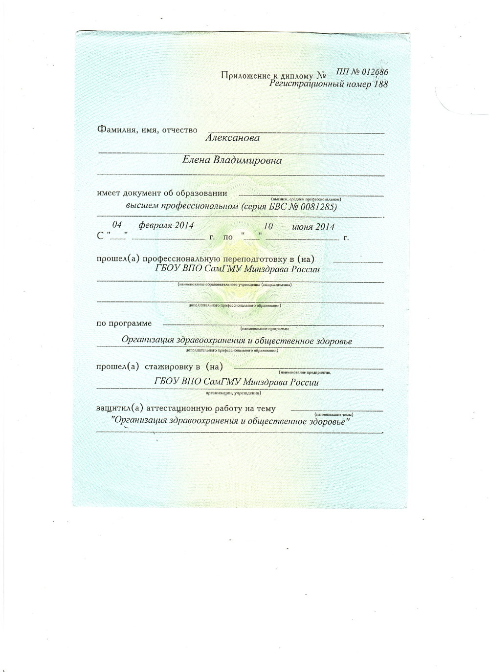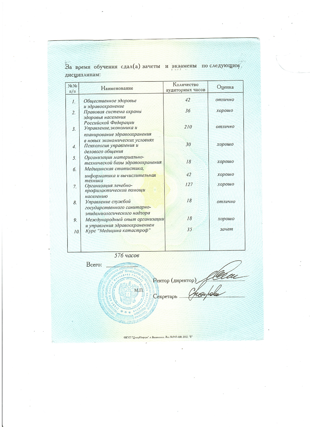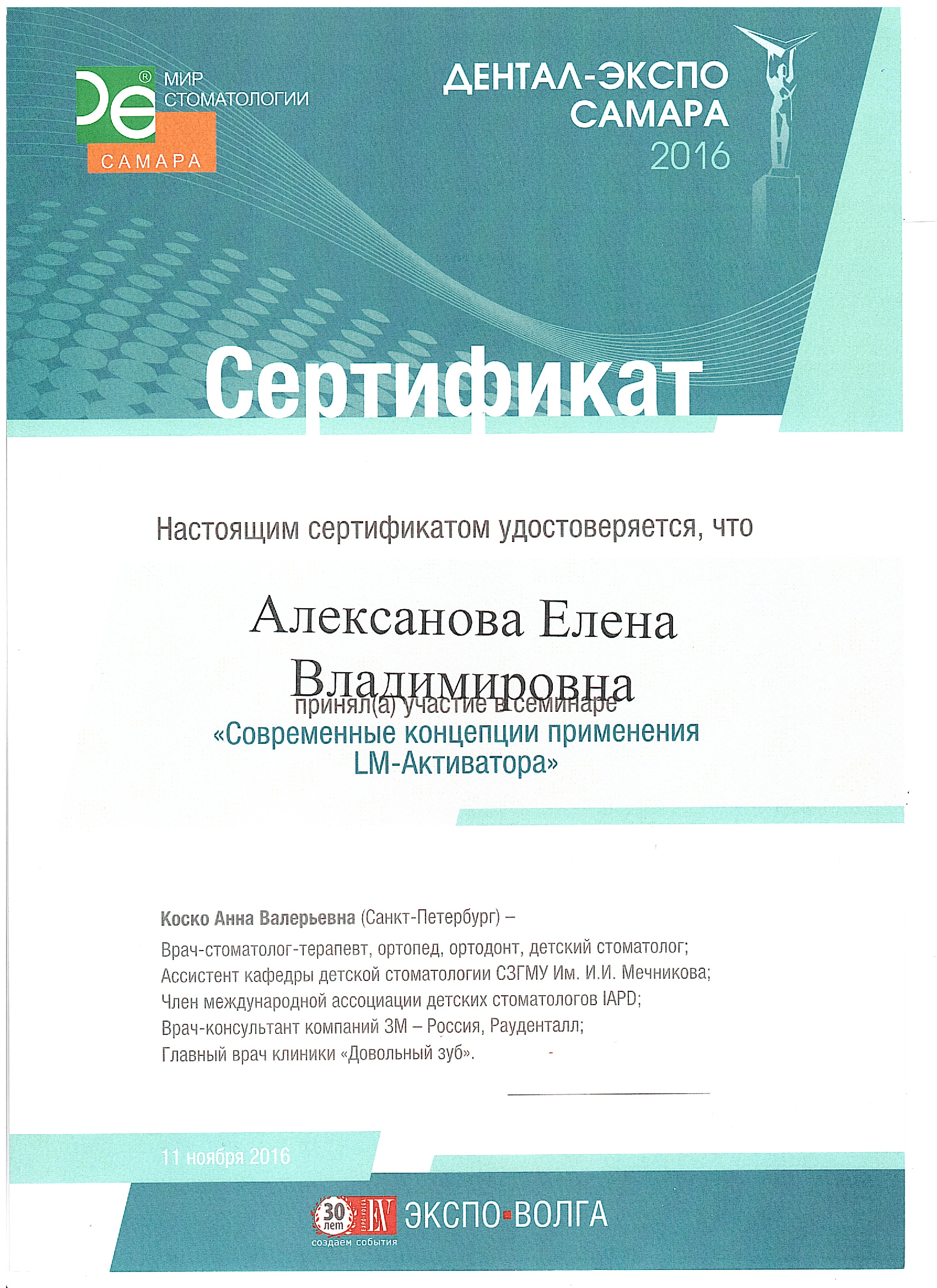 Ноябрь 2016 - Сертификат «Современные концепции применения LM – активатора».