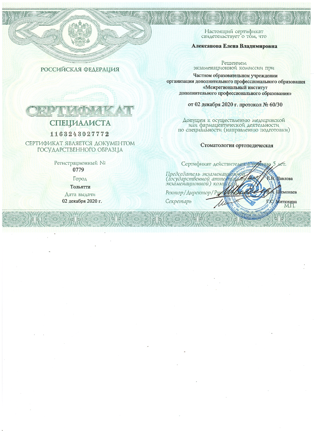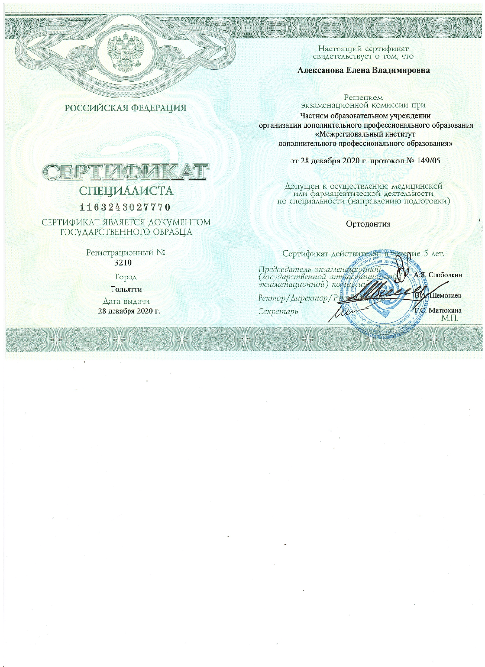 Апрель 2022 - Сертификат «Ортогнатодонтия»